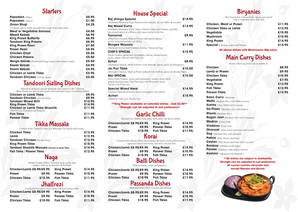 This summary captures the extensive variety, highlighting key dishes and their appeal, presenting Raj Of India as a versatile destination for both traditional and contemporary Indian cuisine.